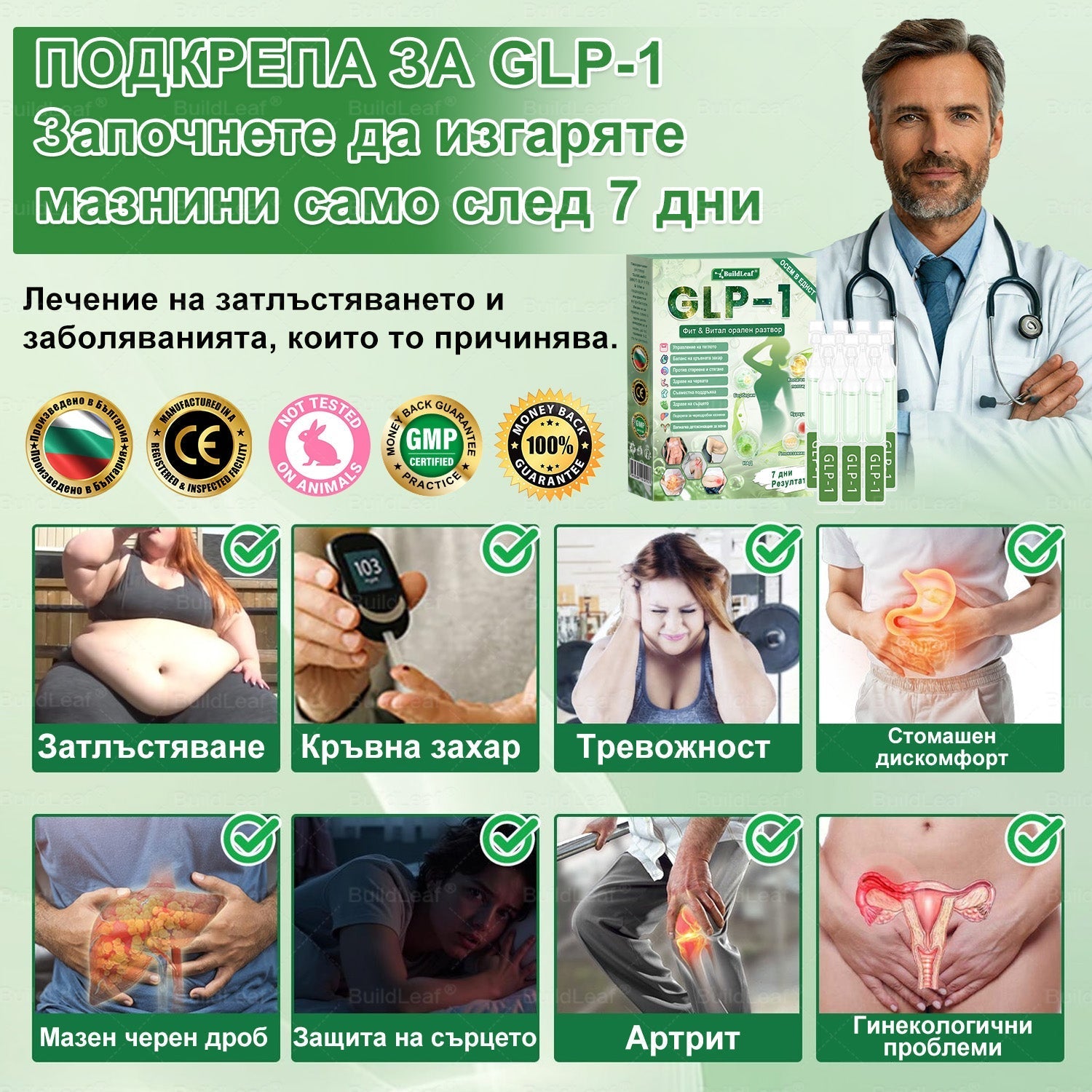 👩🔬 Buildleaf® GLP-1 8-в-1 Фит & Витал орален разтвор | Само веднъж на ден. Видими резултати само за 7 дни. | За затлъстяване и контрол на теглото, сърдечно-съдово здраве, диабет, сънна апнея, здраве на червата, проблеми със ставите и други.